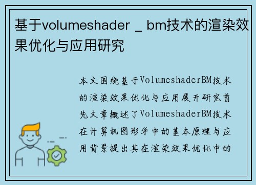基于volumeshader _ bm技术的渲染效果优化与应用研究
