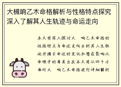 大槻响乙木命格解析与性格特点探究深入了解其人生轨迹与命运走向